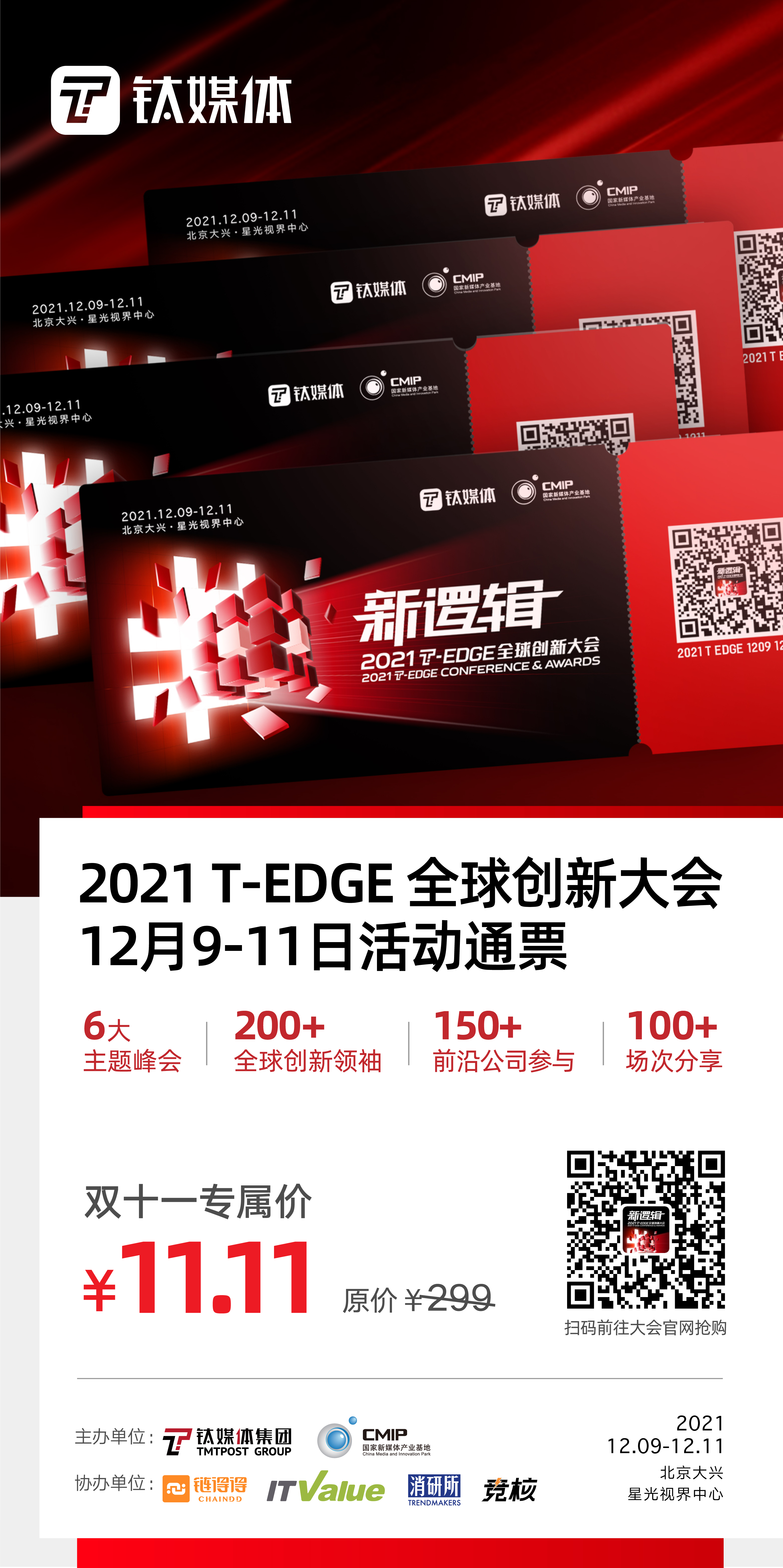 历经千难万阻,钛媒体一年一度的全球创新者盛会“T-EDGE全球创新大会”终于定档了!12月9-11日,我们将在北京大兴星光视界中心举办第九届T-EDGE全球创新大会,本次大会的主题为“新逻辑”,由六大主题峰会组成,将继续邀请不同领域、国内外最具代表性的重磅嘉宾进行分享。