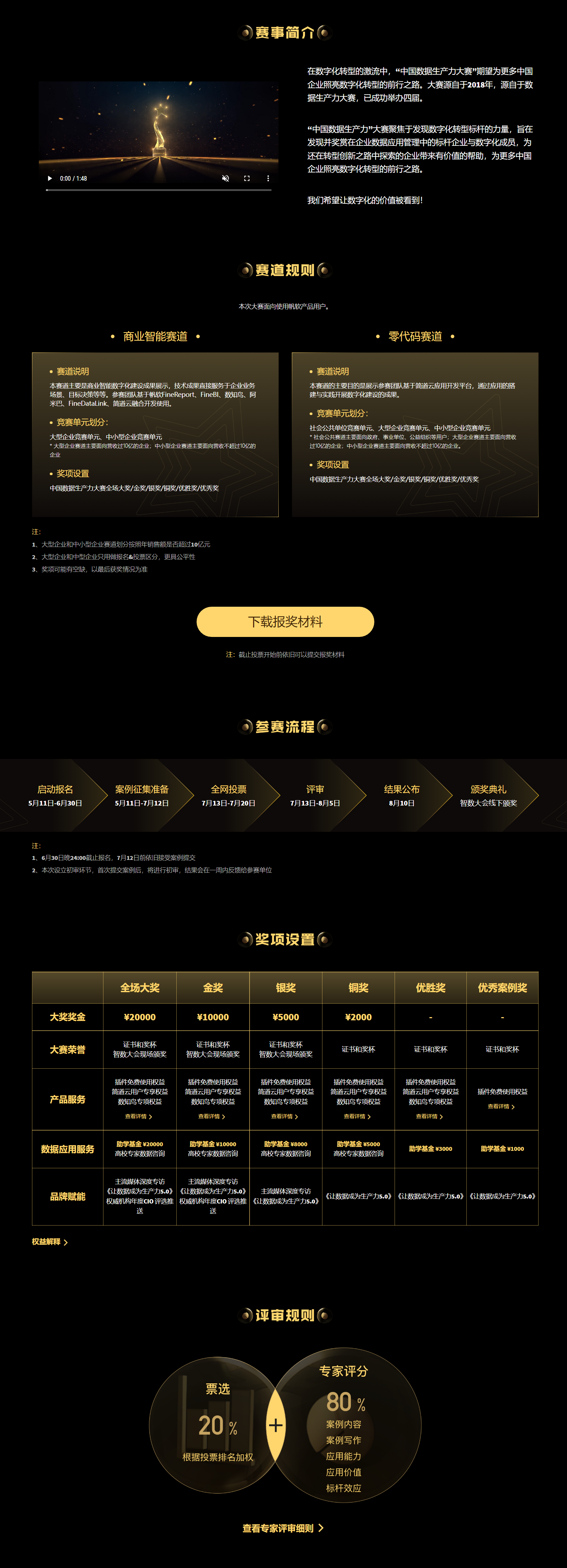 在奖项方面,除了奖金丰厚的头奖和金、银、铜奖以外,还设置优胜与优秀案例奖,区分了两个赛道:商业智能赛道和零代码赛道,希望提供更多对行业有借鉴价值的典型数据应用,启发后来人。不止如此,今年获奖权益分为荣誉、产品服务、数据应用能力和品牌赋能四大类别,包含奖杯、免费产品服务、免费插件、教育基金等实在的权益。