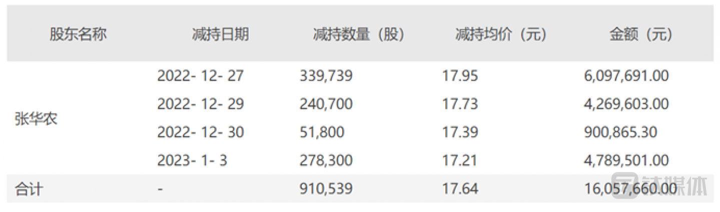 此前,张华农在2019年就已减持套现1.45亿元,2021年减持2亿元,2022年底至今还将套现3%的股份。