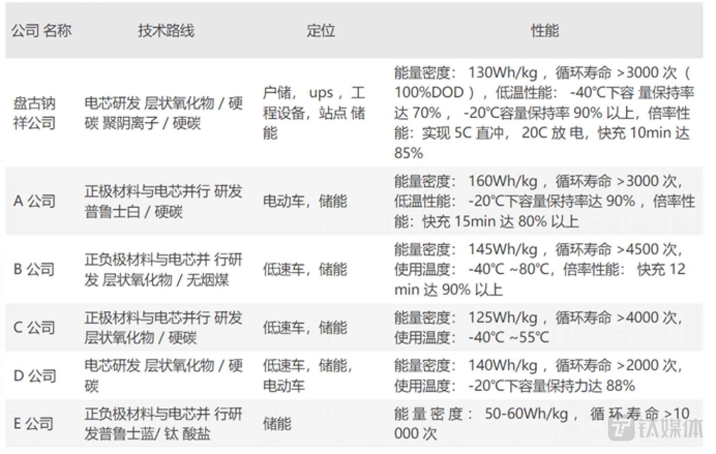 放在同行业内类似竞品中比较,盘古钠祥的第一代产品性能数据在循环寿命、低温性能、能量密度也并不领先。