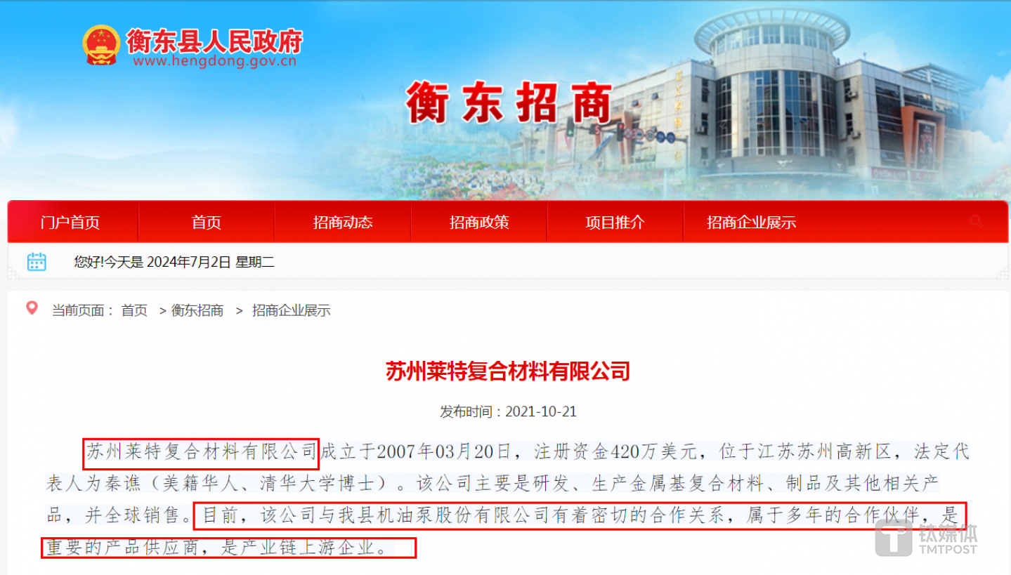 值得注意的是,苏州莱特为公司供应商。据湖南衡东县政府官网显示,苏州莱特与湘油泵有着密切的合作关系,属于多年的合作伙伴,是产业链上游企业。从过往公告获悉,2022年公司对苏州莱特的采购金额为4610.68万元。