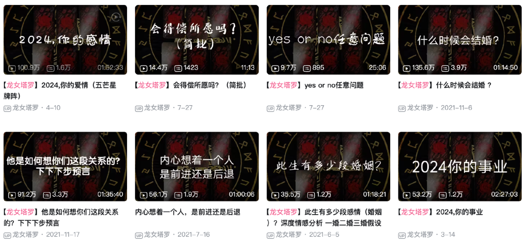 有人觉得,AI玄学是一个很小众的市场,其实不然,玄学的市场大到你想象不到。在某书,玄学话题浏览量高达21.2亿人次,接好运的帖子甚至有11万的点赞;在B站,龙女塔罗的大众占卜视频有100万人在线观看,满屏的领取好运;在微信,玄学的搜索指数高达4400万。![]()