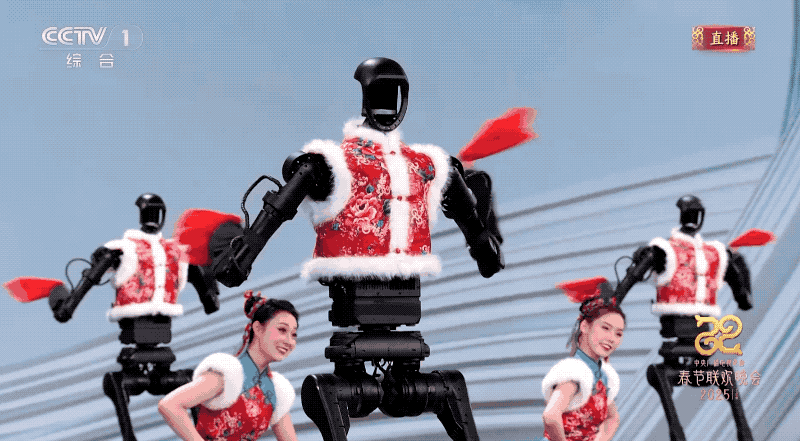 2025年1月28日的春节晚会,全国观众见证了一场炫技式的表演:16位机器人演员整齐划一地扭秧歌、转手绢、最后把手绢抛向台下。