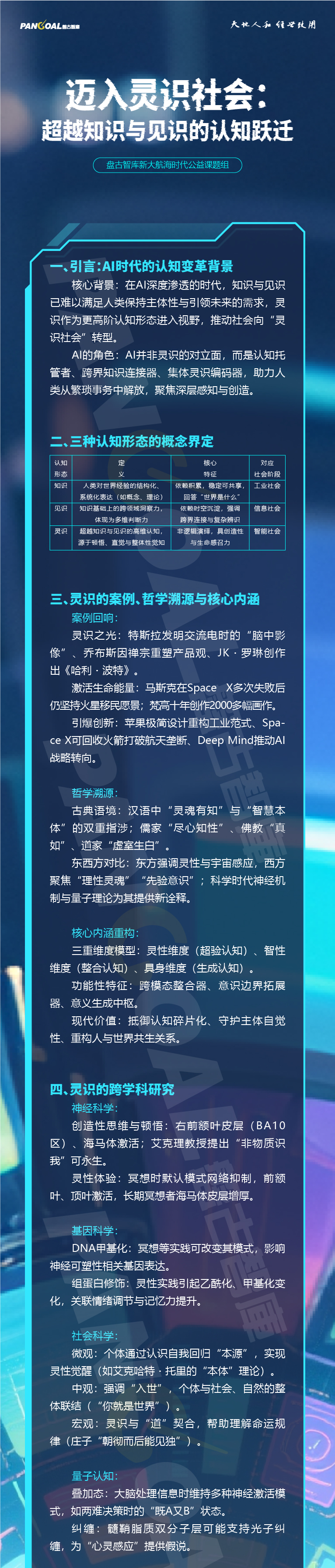 (本文系盘古智库新大航海时代公益课题组报告《迈入灵识社会:超越知识与见识的认知跃迁》简版,课题组主要成员包括盘古智库理事长易鹏、盘古智库高级研究员吴雨峻、盘古智库高级研究员钧天)