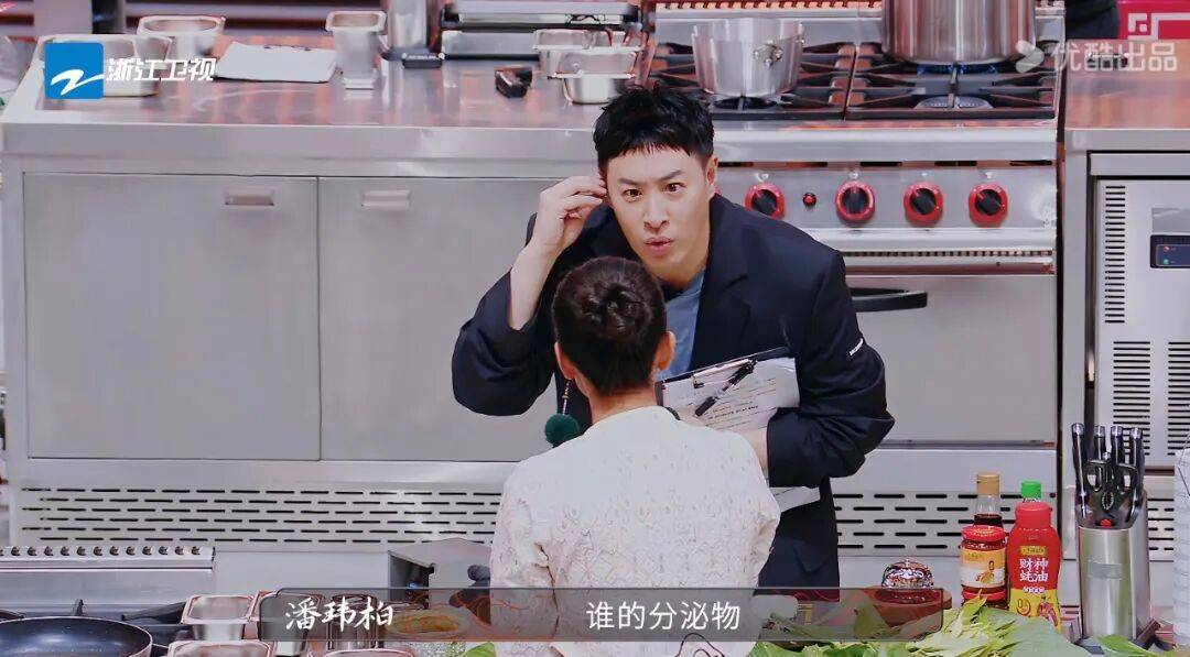 这个设计有利有弊。优点在于,“内娱知名吃货”潘玮柏、“前餐饮从业者”岳云鹏给节目引入了贴近老百姓的口味角度,他们的试吃品鉴环节娱乐效果拉满,岳云鹏手痒痒也要颠上几勺、潘帅哭着喊着“乞求”多喝一碗鸡汤,给令人窒息的竞技场平添了几分轻松,也拉近了高端厨师和吃货观众的心理距离。
