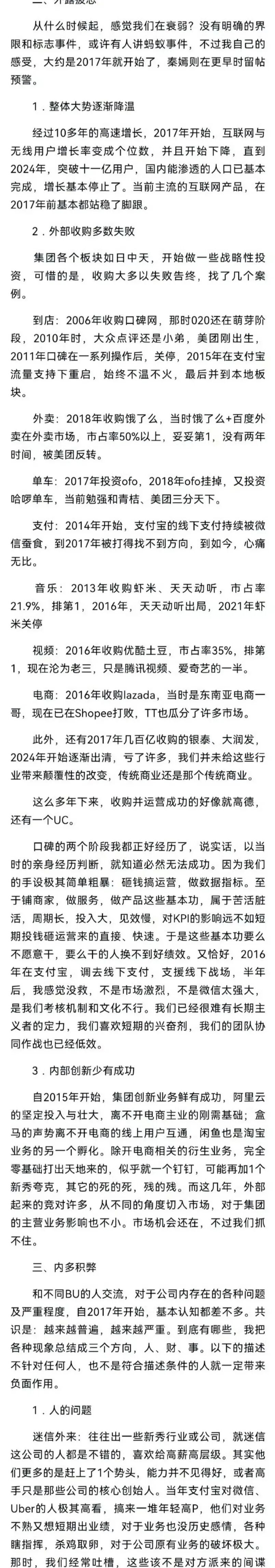 《中国企业家》记录过一个前钉钉中台员工眼中钉钉的变化: