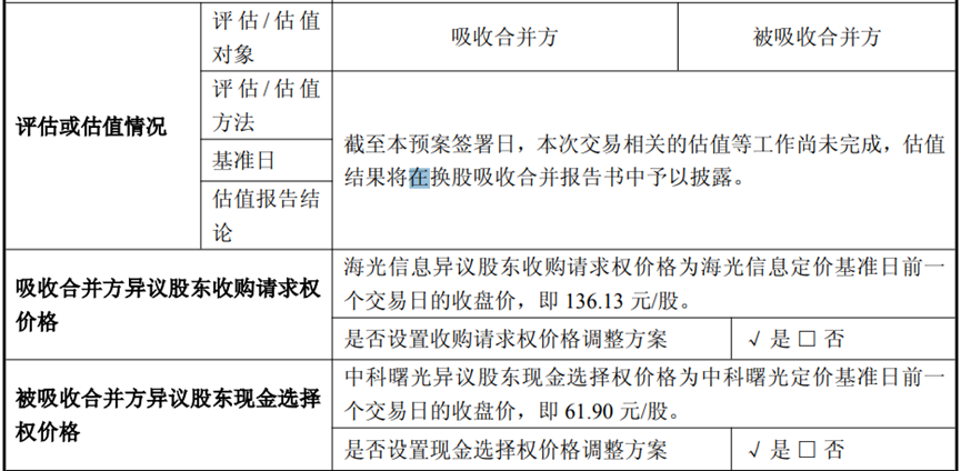 此外,在原交易预案中,对于不接受换股的异议股东,海光信息和中科曙光分别给予了收购请求权和现金选择权。