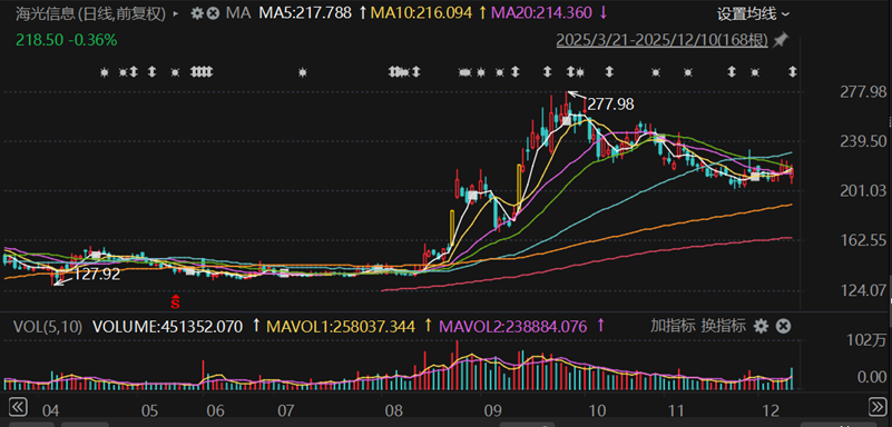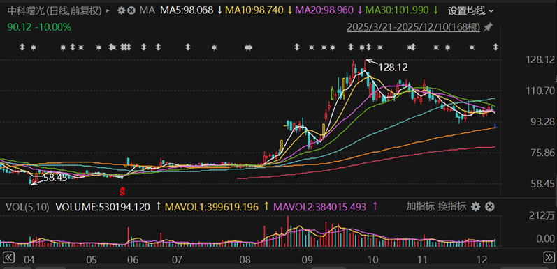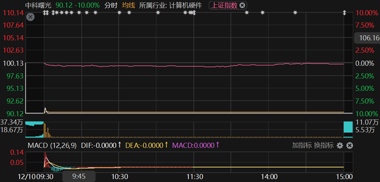 二级市场上,投资者失望离场。12月10日,中科曙光全天封死跌停板,海光信息竞价阶段跌幅一度扩大至8%,盘中逐步企稳,最终收跌0.36%。