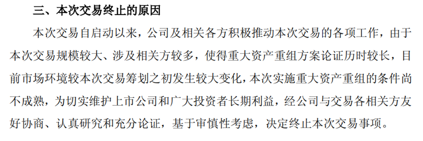 公告中也都提到,为切实维护上市公司和广大投资者长期利益,经公司与交易各相关方友好协商、认真研究和充分论证,基于审慎性考虑,决定终止本次交易事项。