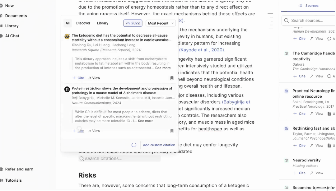 于是,团队做出了第三次,也是最关键的一次转型:砍掉所有营销功能,专注于学术写作。他们引入了自动补全和文献引用功能,解决了学生最头疼的格式和查找资料问题。