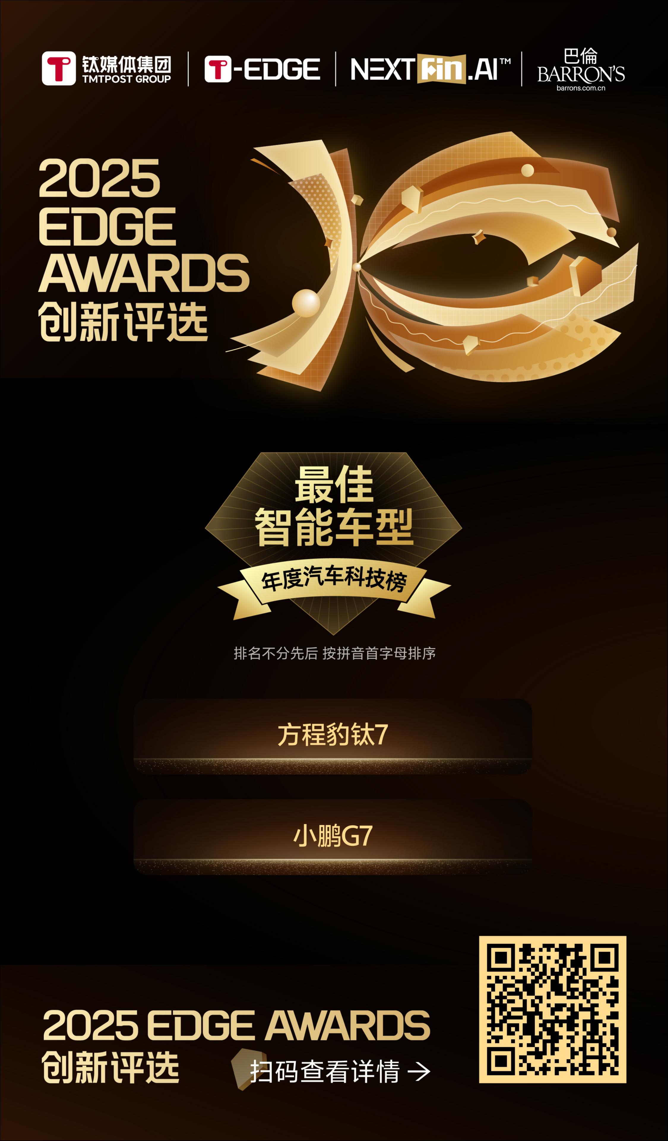 在这样的背景下,钛媒体年度汽车科技榜|2025 EDGE AWARDS 正式揭晓。