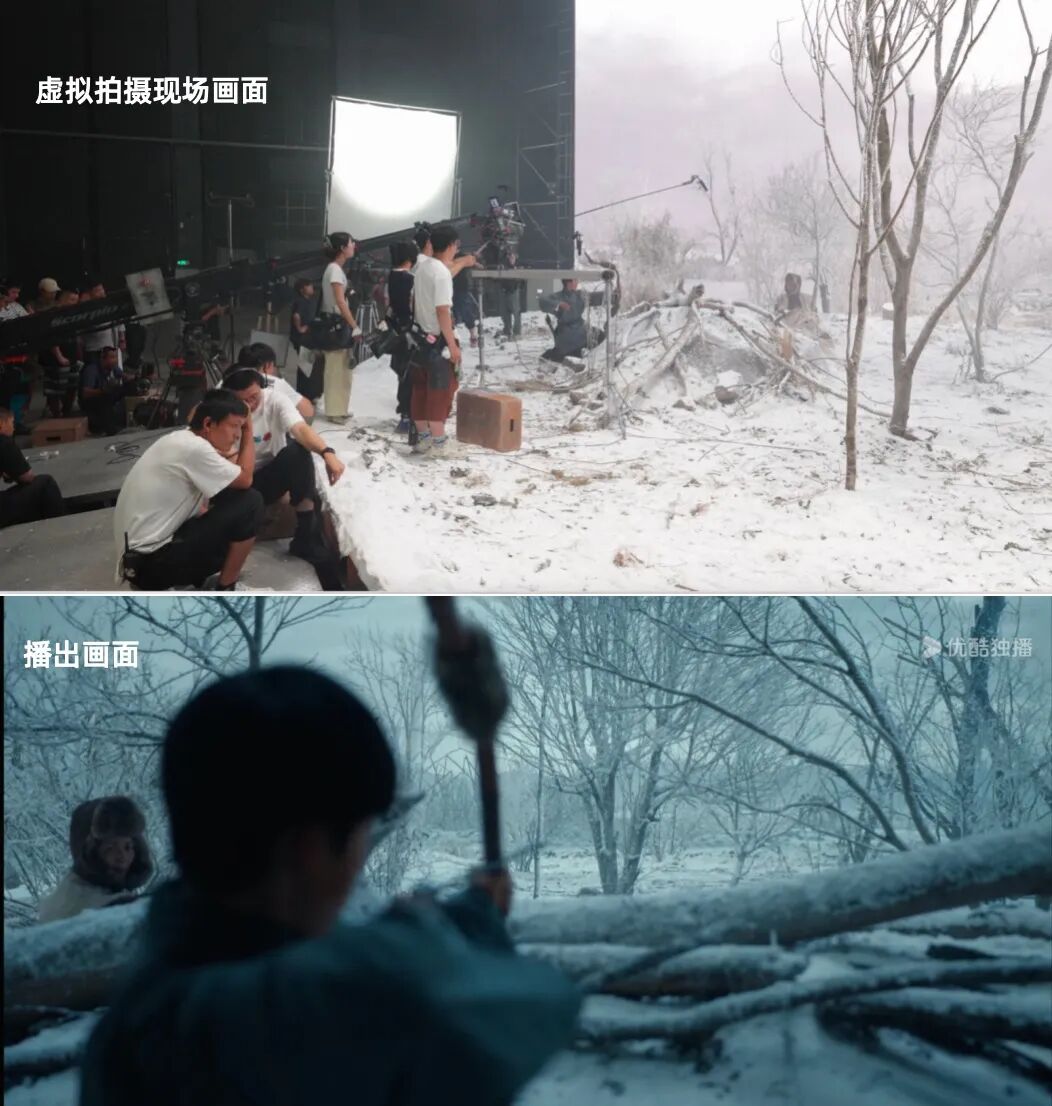 △ 《反人类暴行》虚拍雪景与播出画面对比
