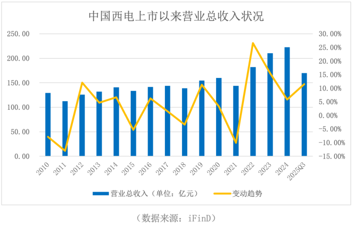 中国西电(601179.SH)是国内唯一拥有输配电一次设备成套生产能力的企业,公司在2025年第三季度实现营业总收入170.04亿元,同比增长11.54%;归母净利润9.39亿元,同比增长19.29%。从业绩上来看,上市15年还能保持如此的成长性实属难得,那么公司究竟做对了什么?