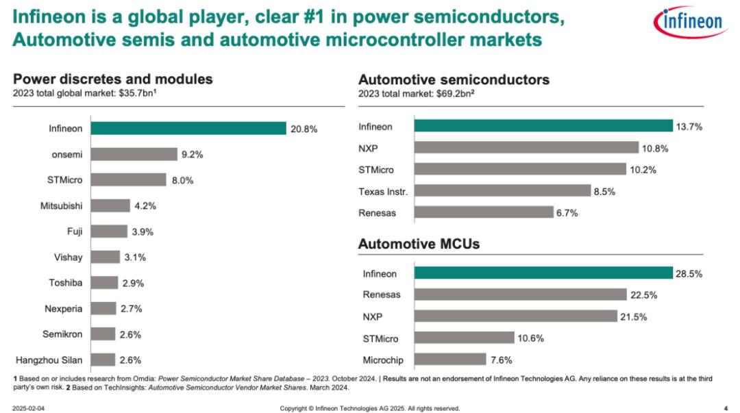 比总量更值得关注的,是格局之变。2024年,全球功率器件前十企业中,士兰微市占率从2.6%升至3.4%,排名由第十跃居第六;比亚迪半导体首次跻身前十,以2.9%份额位列第七。同期,排名第一的英飞凌市占率大幅下降2.4个百分点,排名第二的安森美半导体下降0.7个百分点,排名第三的意法半导体下降1.1个百分点。