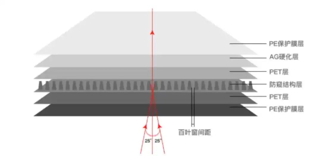归根究底,传统防窥膜,本质是微百叶窗结构,单纯在屏幕表面叠加一层微米级栅栏,让光线只能直线通过,侧面被物理阻挡。