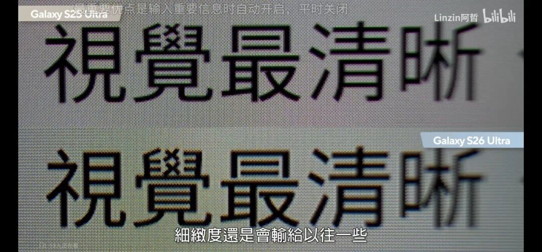 但真正尴尬的是,是另一个问题:即便关闭防窥模式,部分博主也反馈,与上代 S25 Ultra 相比,屏幕精细度与峰值亮度存在细微差异。