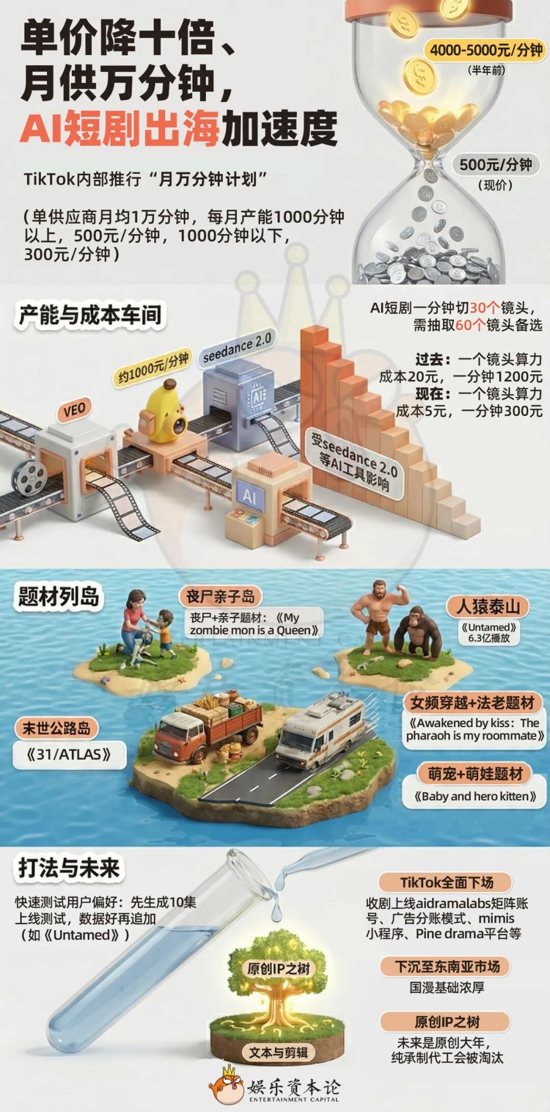 有从业者告诉小娱,Seedance2.0上线后,TikTok内部还提出过“月万分钟计划”,希望每个供应商每个月提供1万分钟的AI短剧内容,承制费每分钟单价也下降至300-500元。