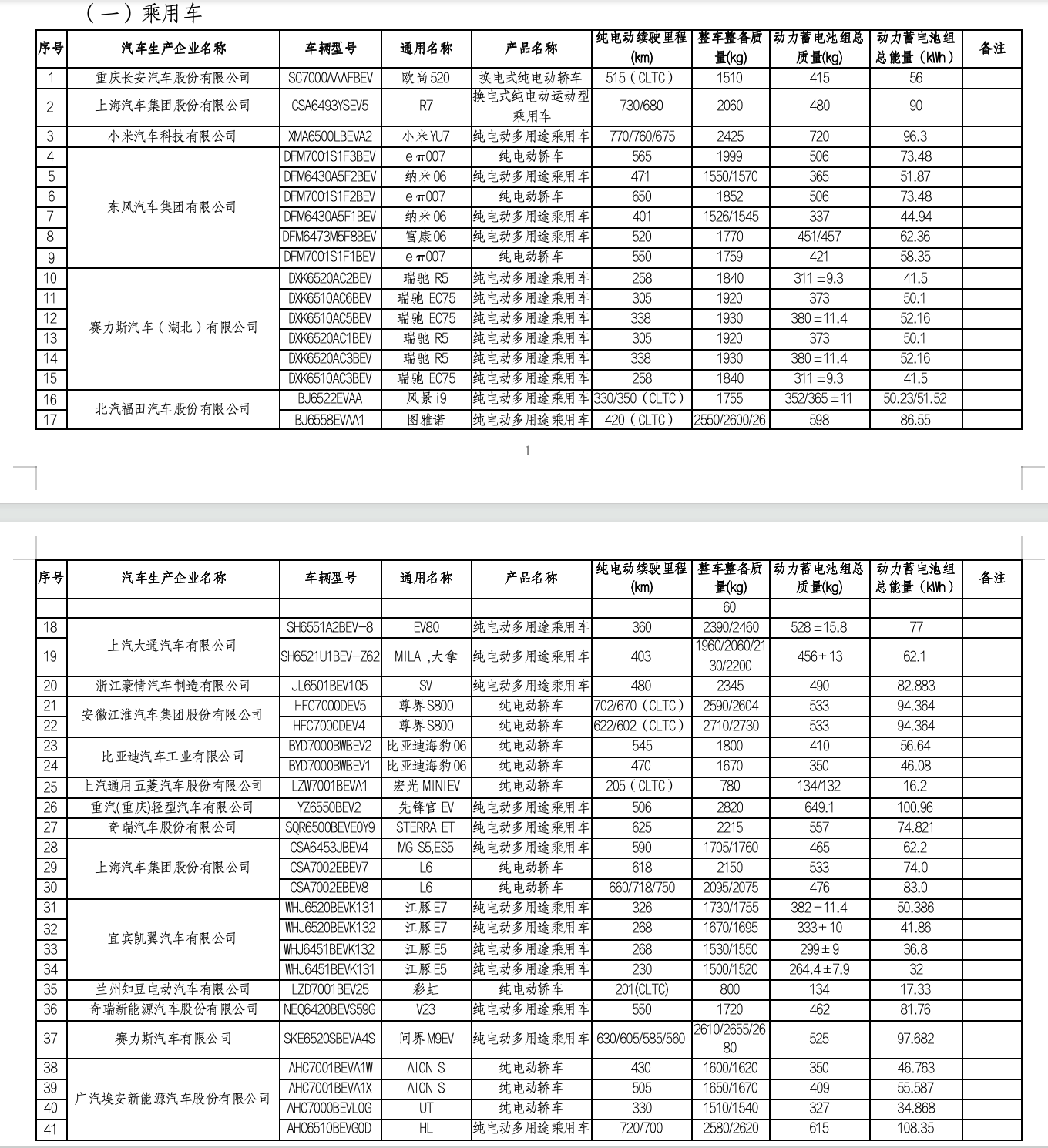 工信部公告《减免车辆购置税的新能源汽车车型目录》(第十五批)