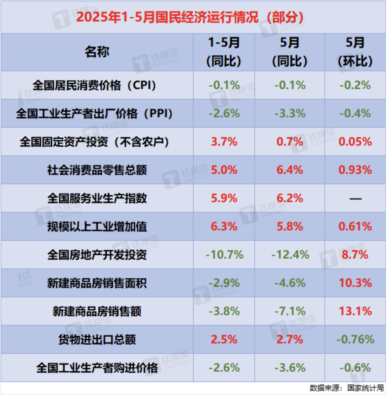 【钛媒体综合】据新华社,6月16日国家统计局发布的数据显示,今年5月份,国民经济顶住压力平稳运行,生产需求稳定增长,就业形势总体稳定,新动能成长壮大,高质量发展向优向新。