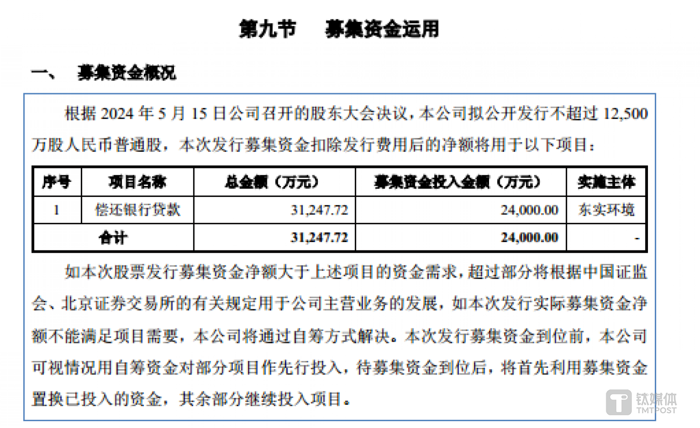 在巨大的债务压力之下,东实环境却向资本市场做出了一个“惊人的决定”。6月25日,东实环境提交的IPO申报稿被北交所受理,公司欲募集2.4亿元,并全部用来偿还银行贷款。