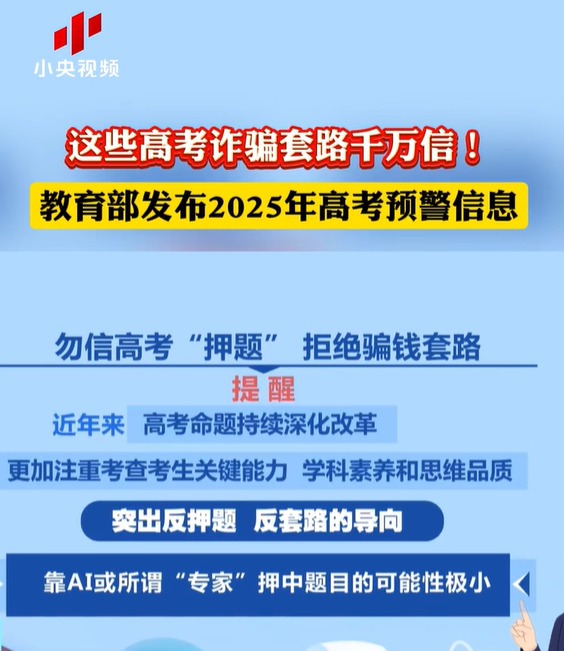 近期,教育部发布的2025年高考预警信息中,就直接提及误信高考押题影响备考。