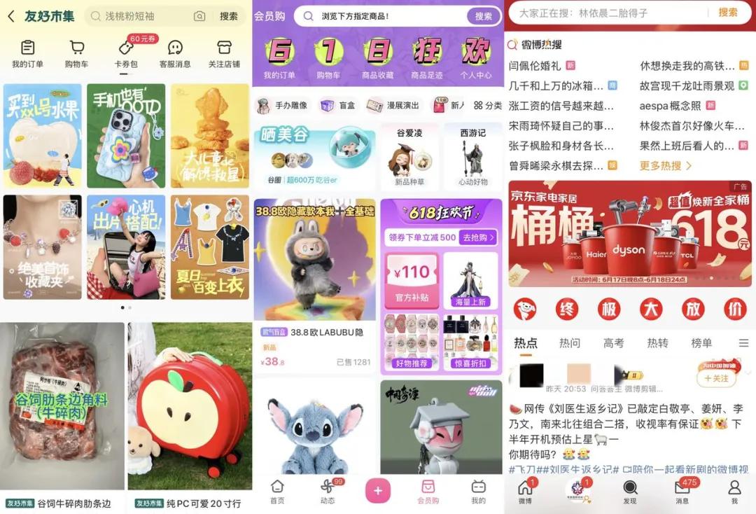 但今年内容平台明显更冷静内收。小红书的618更名为“友好市集”,直接去掉618传统大促的标签;搜索相关关键词时,达人直接为618做推广的内容也有所减少,仅头部美妆品牌仍保持较高曝光。B站的会员购专区内,商品均以动漫游戏周边、电脑硬件为主,也没有像大力助推UP主带货美妆服饰等其他品类。微博的动作更为直接简单,就是通过开屏广告、首页横幅、弹窗等常规广告资源为电商平台引流,站内也没有618的专属活动。