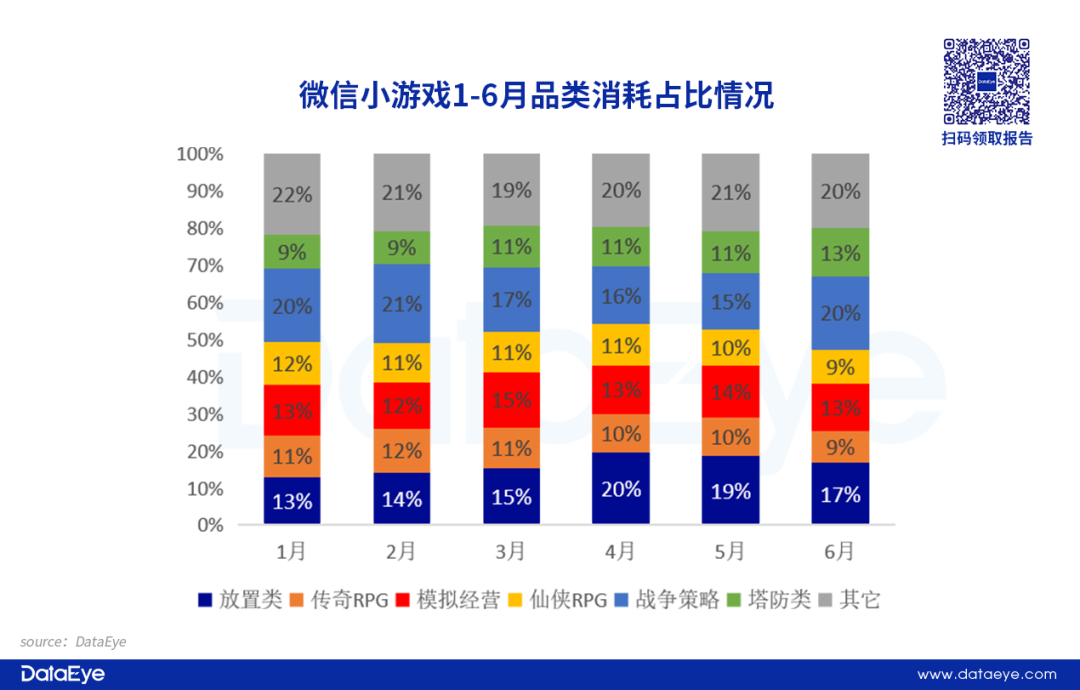 而在营销方面,DataEye研究院发布的小游戏买量月榜数据显示,塔防赛道的消耗占比持续提升,从1月占比仅有9%,在6月已经升至13%,侧面反映出国内小游戏用户对塔防品类有着极高的游戏需求。