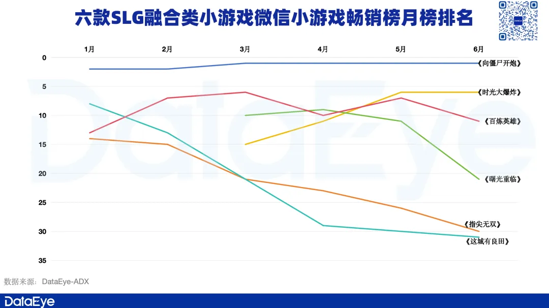在小游戏端,《向僵尸开炮》一直以来都是以塔防+SLG的概念占据榜单TOP5;在APP端,儒意景秀的《龙石战争》也是选择轻塔防+SLG的玩法。