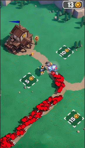 随着剧情推进,玩家可以建造更多建造,有防御塔等军事建筑,也有厨房等生产建筑。前期副玩法的游戏循环便是:进行塔防战斗防御敌军——获取资源——建造更多建筑和招募更多士兵。期间会不断解锁更多玩法模式,包括放置玩法的远征机制等,直至最后解锁SLG的大地图。