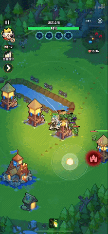 在游戏玩法方面,《奔奔王国》与海外版的玩法基本类似,核心玩法是开局上让玩家直接扮演一位拯救村民的国王,单摇杆操控角色移动,停止时会进行自动射击,这套类《弓箭传说》的操作方式可以说是无任何上手门槛。